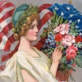 What a glorious way to celebrate our freedoms! Let the "grand old story of fadeless glory" capture a state of mind as we express our pride and gratitude for living in America today. Vintage images of children marching, flags flying high, and Lady Liberty and Uncle Sam dressed in stars and stripes fill the air - you can almost hear the band.